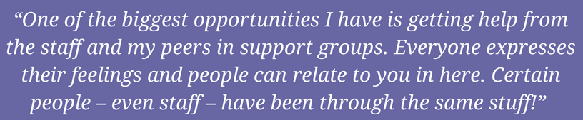 “One of the biggest opportunities I have is getting help from the staff and my peers in support groups,” said Jermaine. “Everyone expresses their feelings and people can relate to you in here. Certain people – even staff – have been through the same stuff!”
