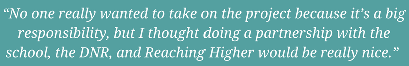 “No one really wanted to take on the project because it’s a big responsibility,” said Todd Wilson, Reaching Higher Teacher, “But I thought doing a partnership with the school, the DNR, and Reaching Higher would be really nice.”